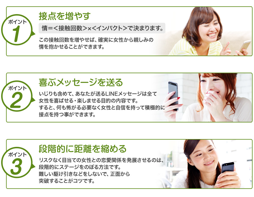 正しいタイミングで女性の心理を突いたメッセージを送ります。