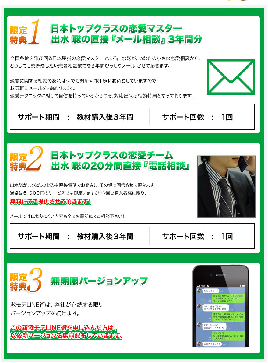 購入いただいた方には代表の出水 聡はもちろん、チーム員に直接、恋愛相談ができる